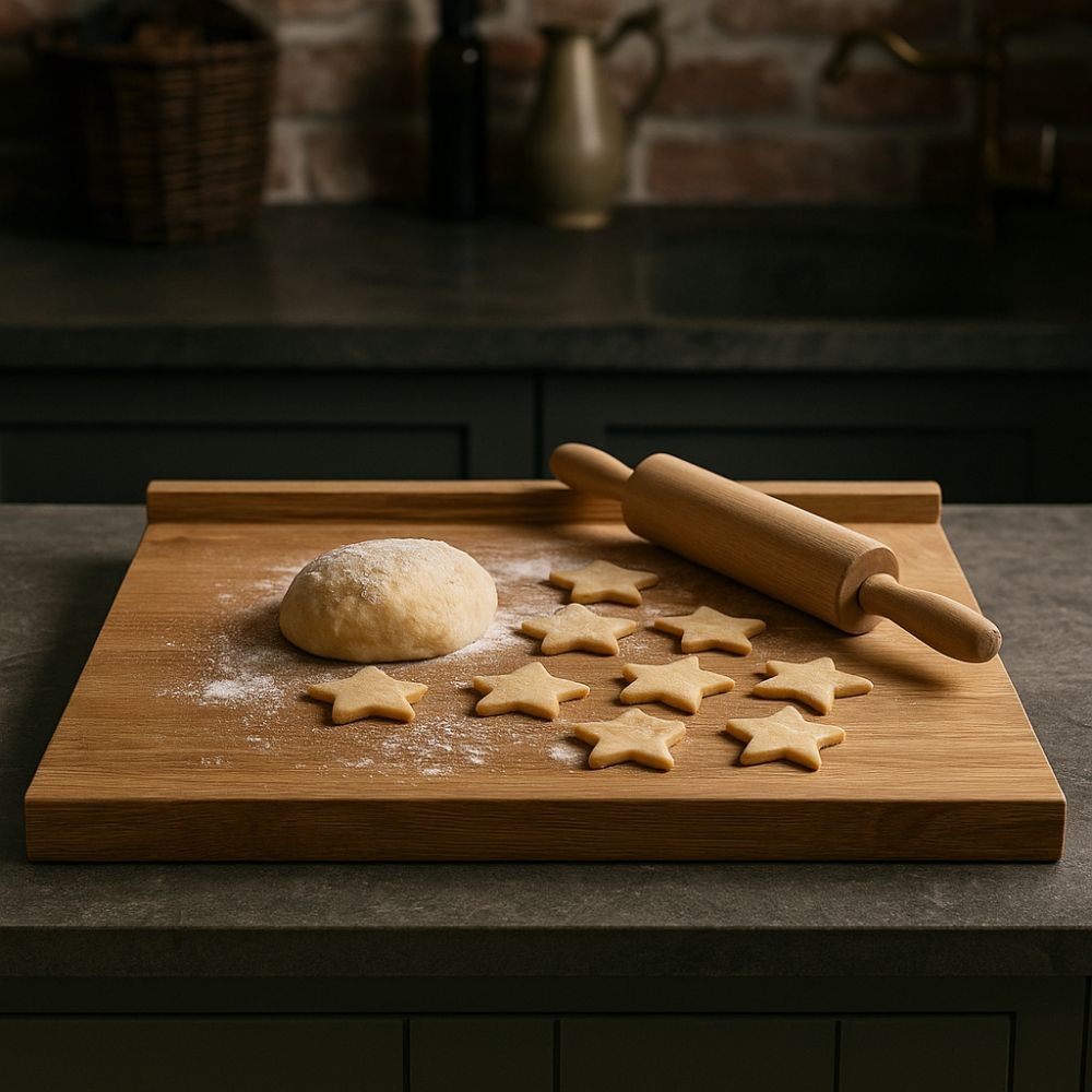 Dank dieser vielseitigen Einsatzmöglichkeiten ist ein Backbrett aus Holz das ganze Jahr über nützlich – nicht nur in der Weihnachtsbäckerei. Es schützt die eigentliche Arbeitsplatte vor Verschmutzung und Kratzern (etwa wenn man Teigschaber oder Messer benutzt) und fängt Mehl und Teigreste zuverlässig auf. Nach dem Backen kann man das Brett einfach an den Griffmulden anfassen und samt Mehlresten zur Spüle tragen – viel einfacher, als die ganze Arbeitsfläche zu säubern. Auch beim Kochen erweist es unschätzbare Dienste, indem es als mobile Zusatzfläche oder großes Schneidebrett fungiert. Kurz gesagt: Mehr als nur ein Backbrett – dieses Küchenaccessoire erweitert deine Möglichkeiten erheblich und wird schnell zum Lieblingshelfer für Backfans und Kochbegeisterte.
