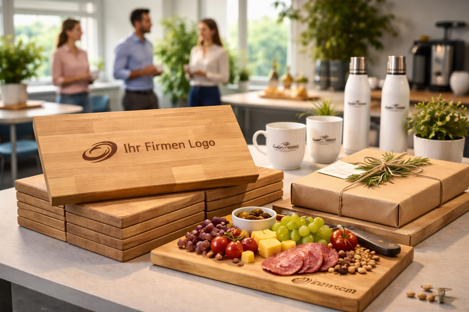 Maßgefertigtge Produkte aus Massivholz für Unternehmen, Mitarbeiter & Werbeaktionen, inkl. Ihrem Logo.