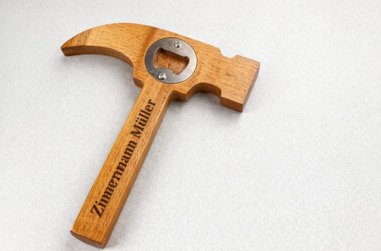 Hammer mit Flaschenöffner und logo